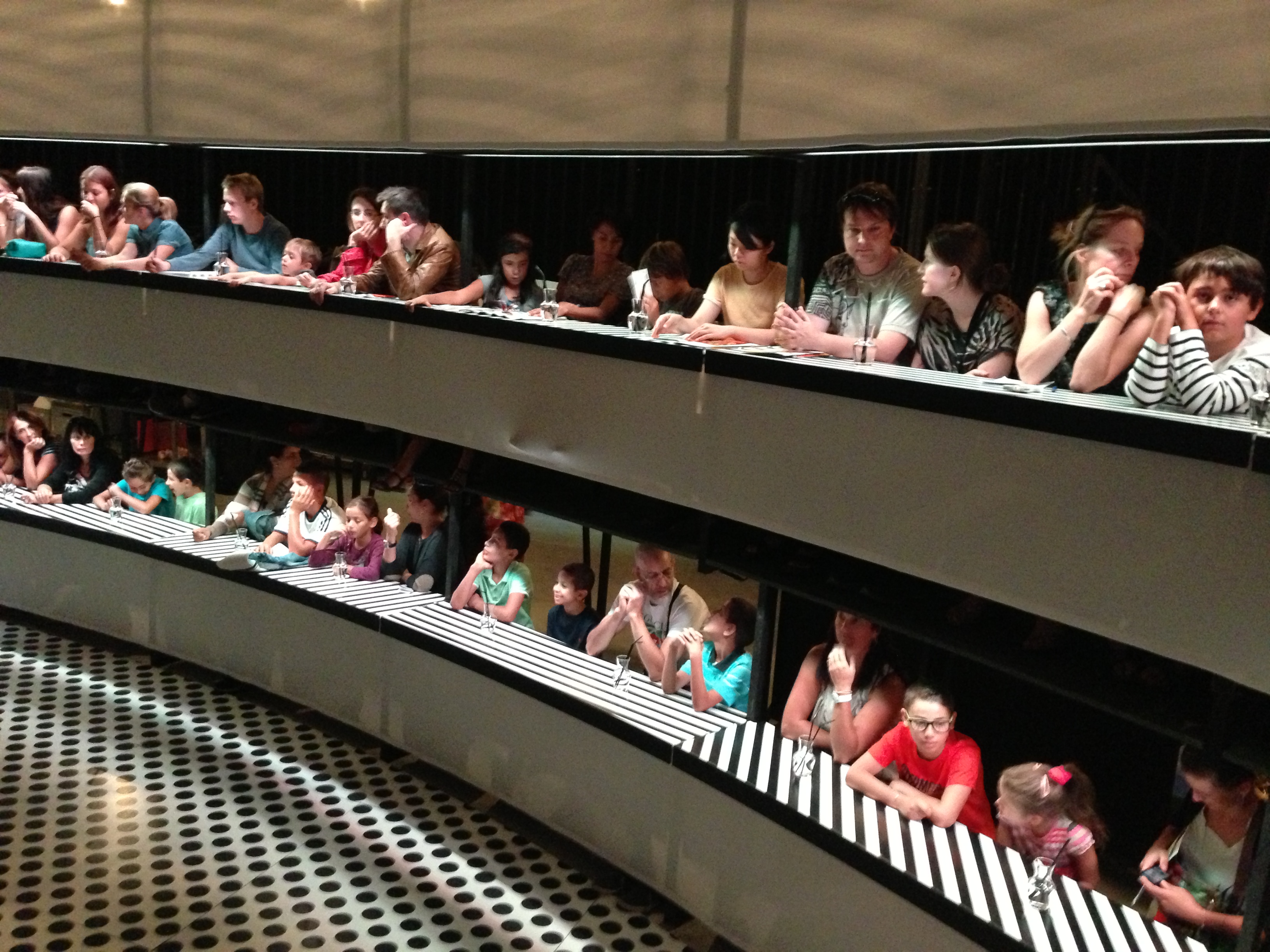 « Umami », « spectacle à croquer par le jeune public », par la compagnie Laika et Piccoli Principi, est la plus belle scénographie du festival. Inspiré d’un théâtre à l’italienne, je me ressens dans une assemblée délibérative du bon goût. De haut, j’observe le jeu de ces acteurs belges et italiens réunis pour la circonstance par le Théâtre Massalia. C’est un laboratoire expérimental où le sol métaphorise la langue, mais où le théâtre se charge de faire émerger ce 5ème goût, à la saveur énigmatique, celui qui est en chacun de nous, lorsque nous communiquons autour d’un plat. Voici donc un chef qui doit se concentrer autour de sa recette tandis que ses compères incarnent ce que l’art de cuisiner procure : passion, folie, créativité, violence, déconstruction, désirs…On se prend au jeu, celui de l’amour et du hasard tout en regrettant finalement d’être abandonné lors du dernier instant : celui du 5ème goût, telle une petite mort surgissant trop vite…