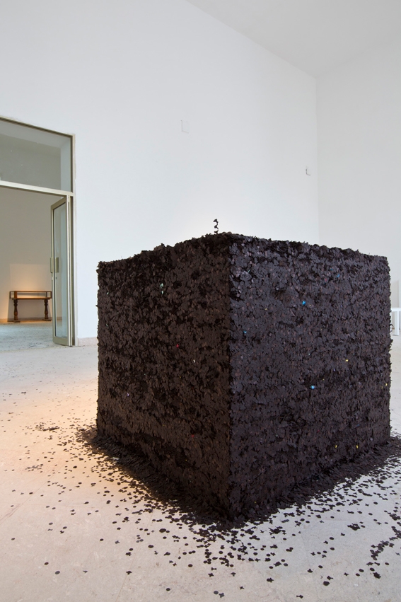 Oui, à la jeune démocratie tunisienne ! Même si sa force révèle une fragilité qui fait frémir. Le cube de confettis de l’Italienne Lara Favaretto peut à tout moment s’effondrer. Hommage à la Tunisie, cette œuvre côtoie les glaçantes chaises de Jannis Kounellis. Certains visiteurs passent à côté d’elles,  fascinés par le cube. Pourtant, la nuit des longs couteaux menace…